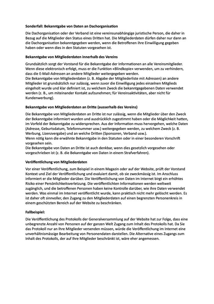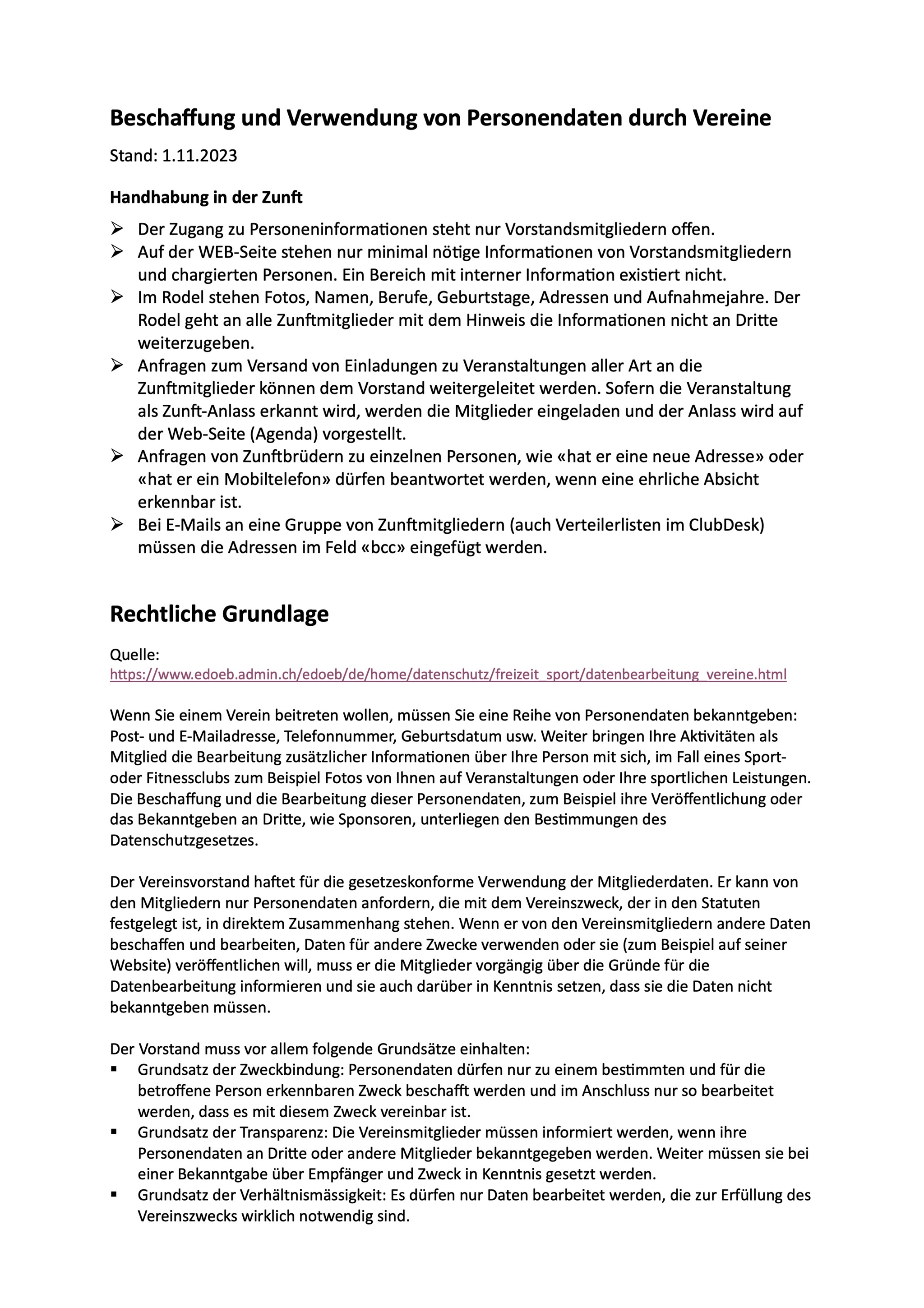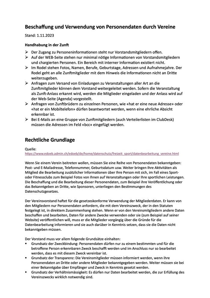Datenschutzgesetz für Vereine / Zünfte
